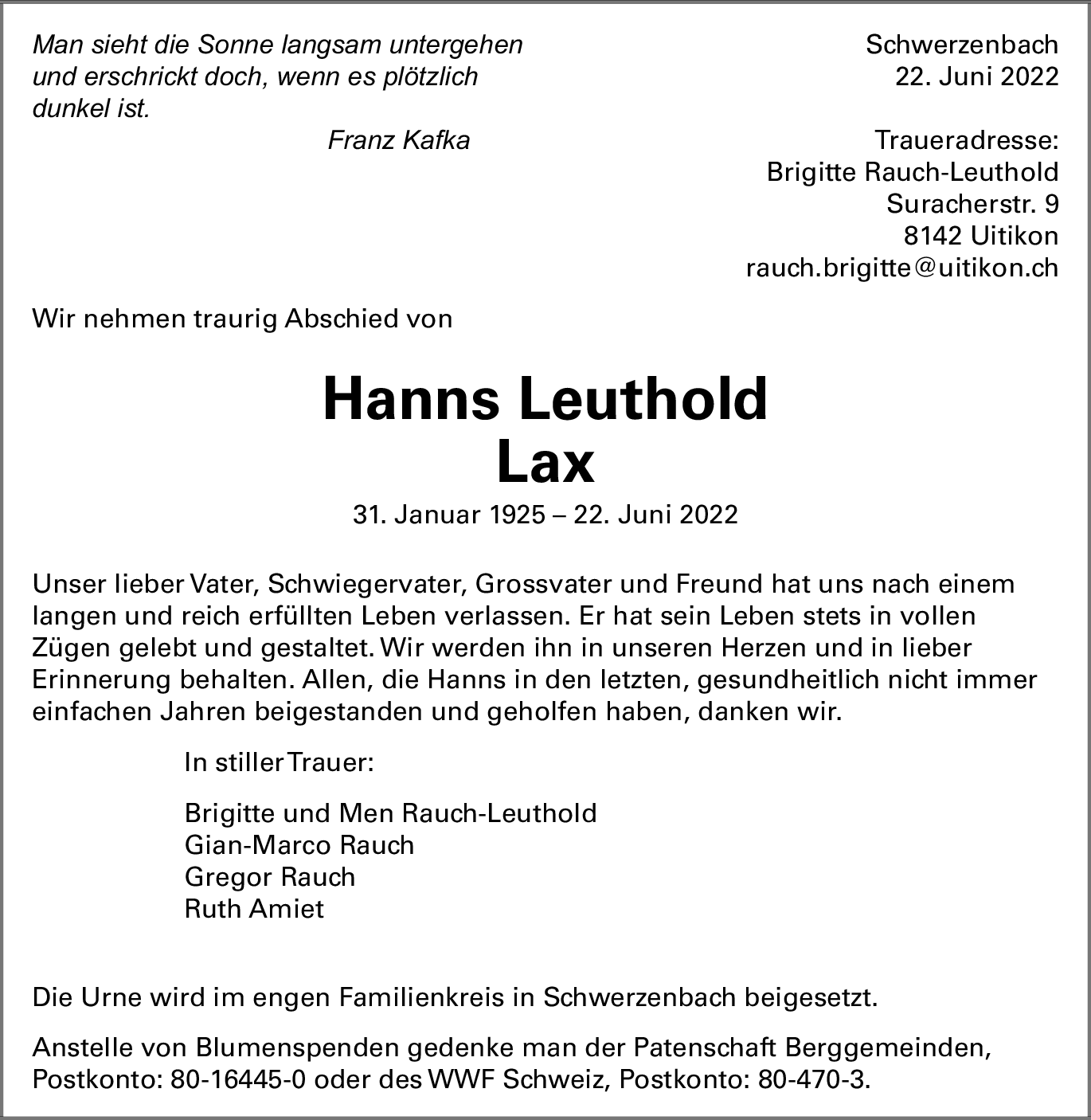 Todesanzeigen