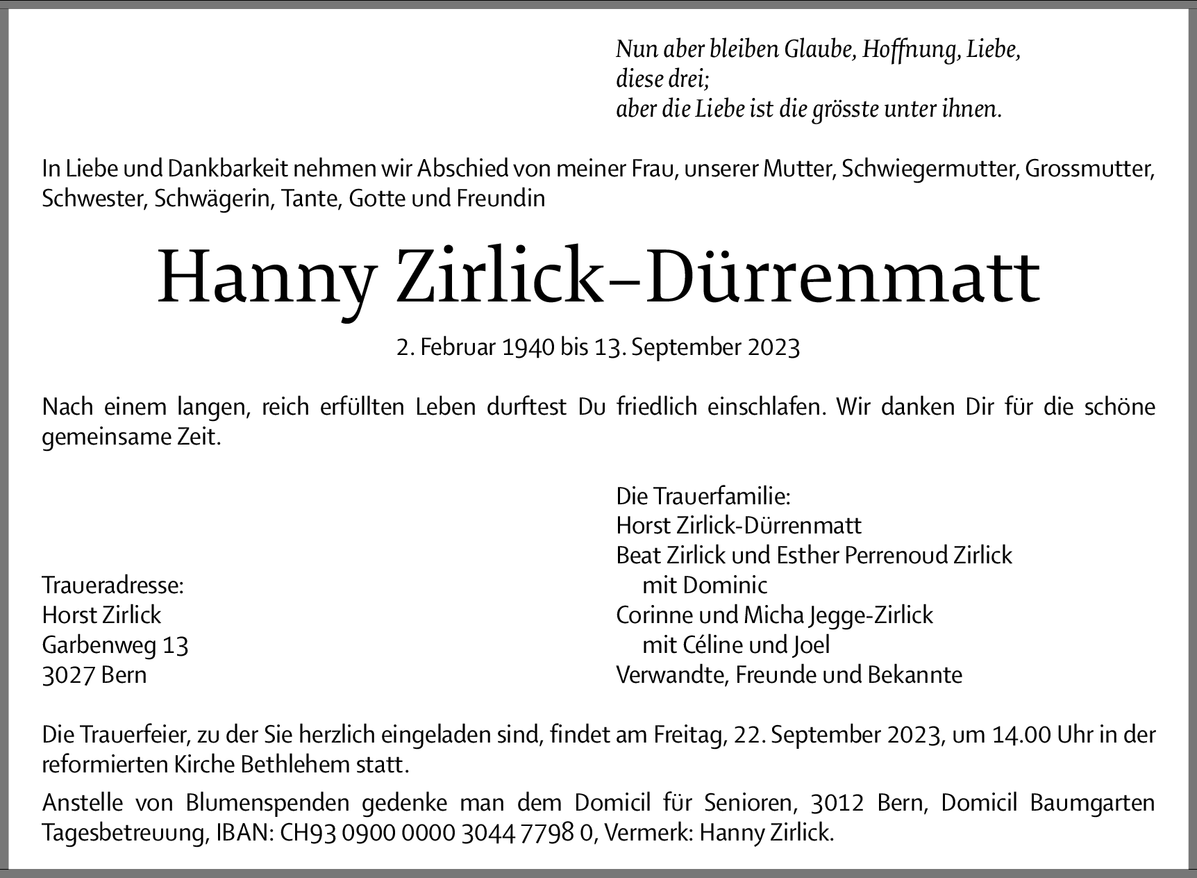 Möchten Sie über neue Todesanzeigen und Kondolenzen für diesen Verstorbenen informiert werden?