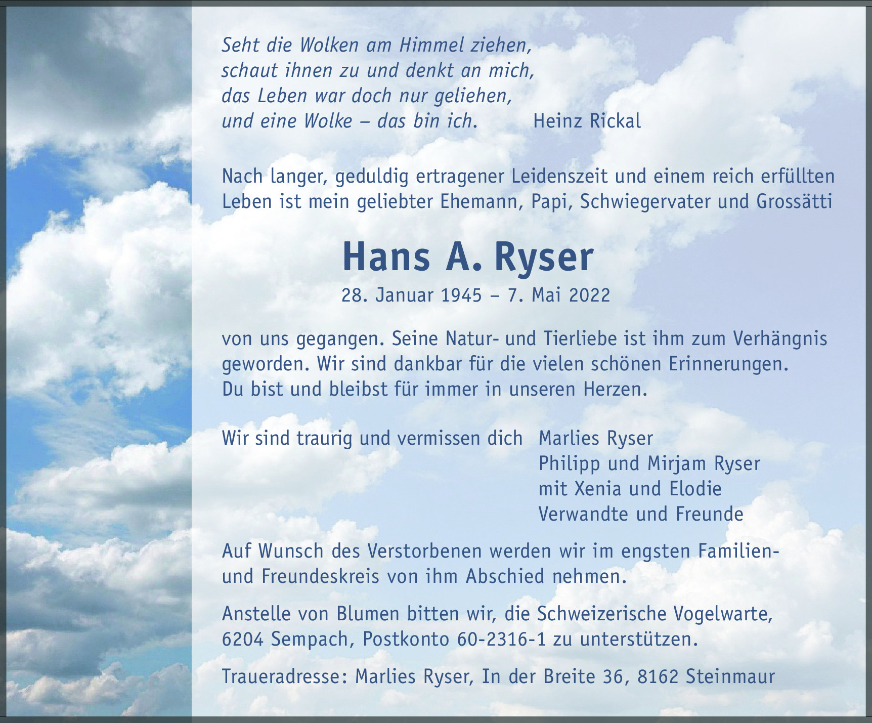 Möchten Sie über neue Todesanzeigen und Kondolenzen für diesen Verstorbenen informiert werden?