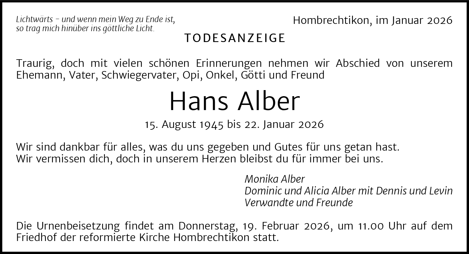 Möchten Sie über neue Todesanzeigen und Kondolenzen für diesen Verstorbenen informiert werden?