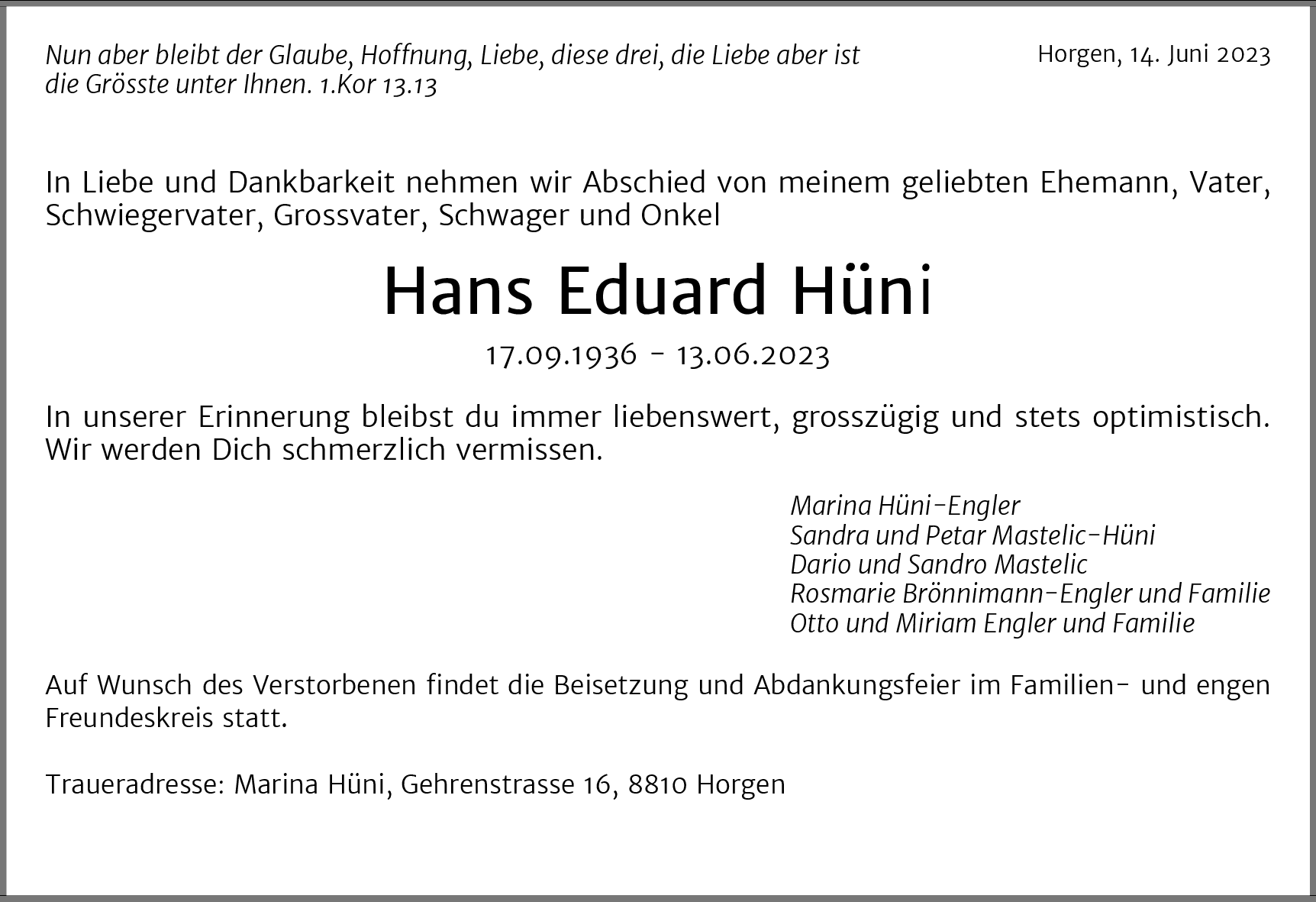 Möchten Sie über neue Todesanzeigen und Kondolenzen für diesen Verstorbenen informiert werden?