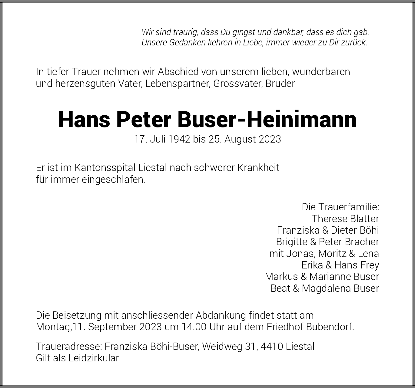 Möchten Sie über neue Todesanzeigen und Kondolenzen für diesen Verstorbenen informiert werden?