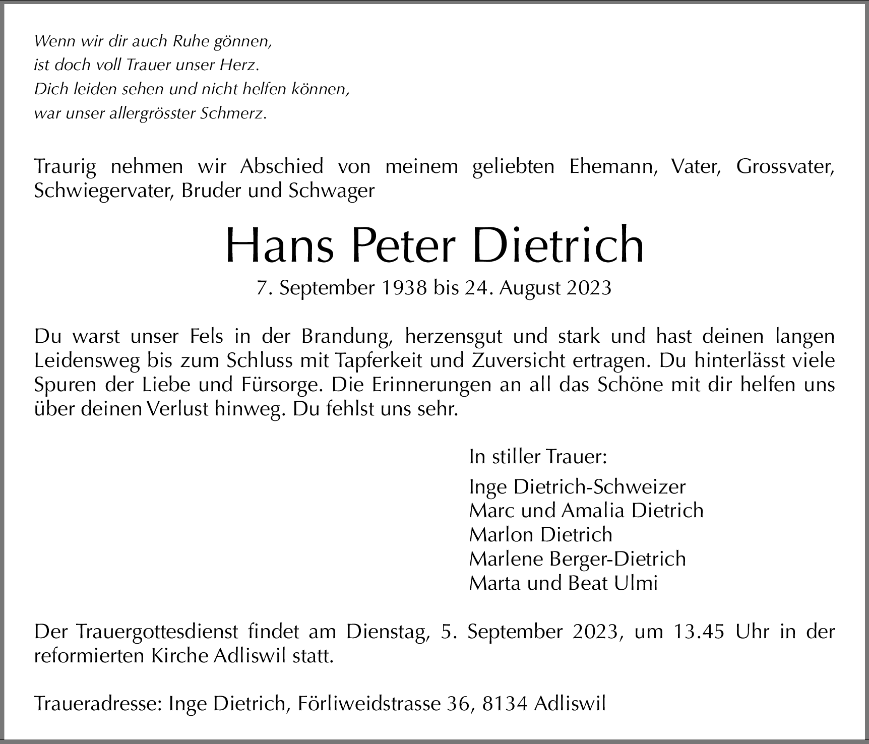 Möchten Sie über neue Todesanzeigen und Kondolenzen für diesen Verstorbenen informiert werden?