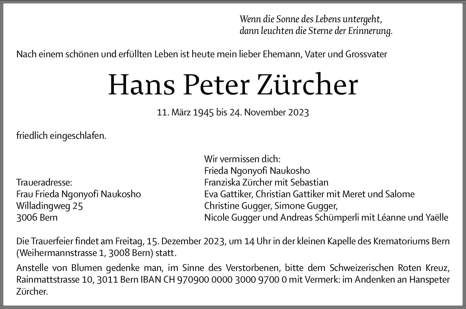 Möchten Sie über neue Todesanzeigen und Kondolenzen für diesen Verstorbenen informiert werden?
