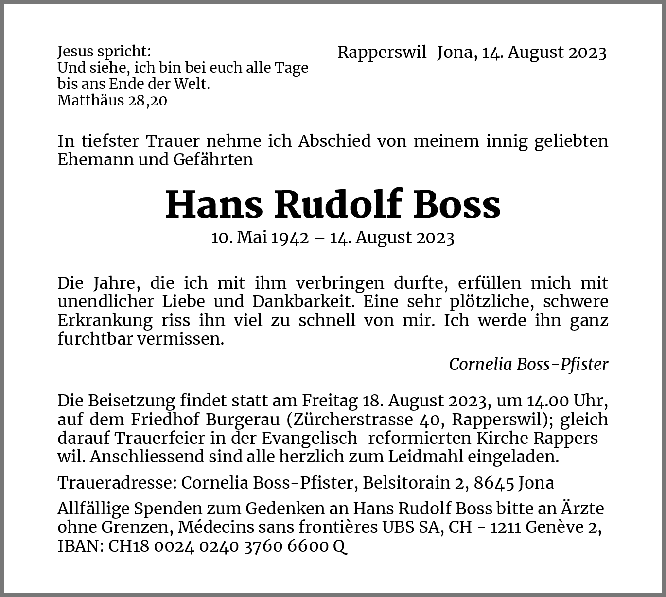 Möchten Sie über neue Todesanzeigen und Kondolenzen für diesen Verstorbenen informiert werden?
