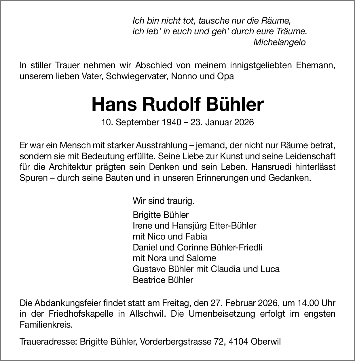 Möchten Sie über neue Todesanzeigen und Kondolenzen für diesen Verstorbenen informiert werden?