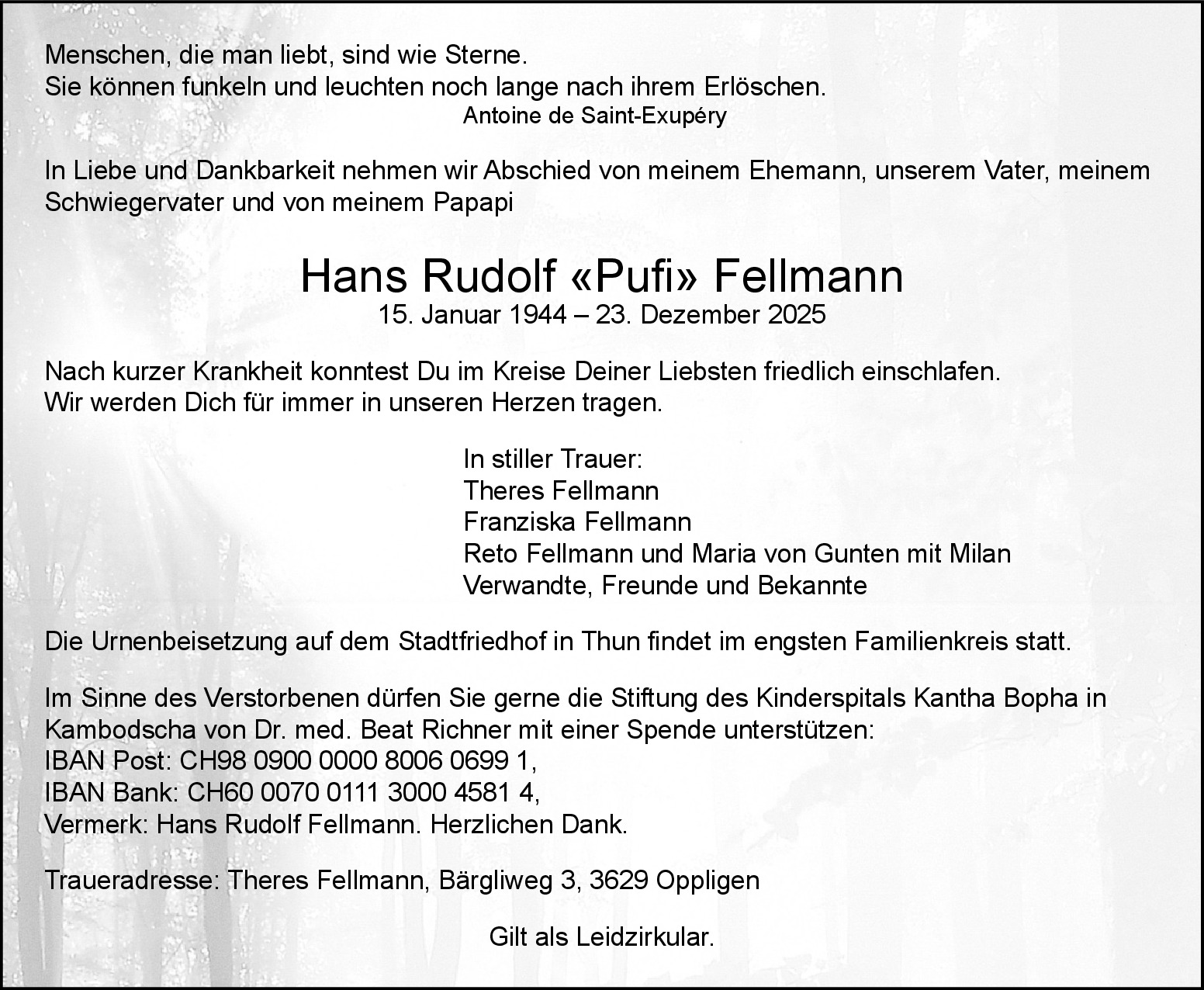 Möchten Sie über neue Todesanzeigen und Kondolenzen für diesen Verstorbenen informiert werden?