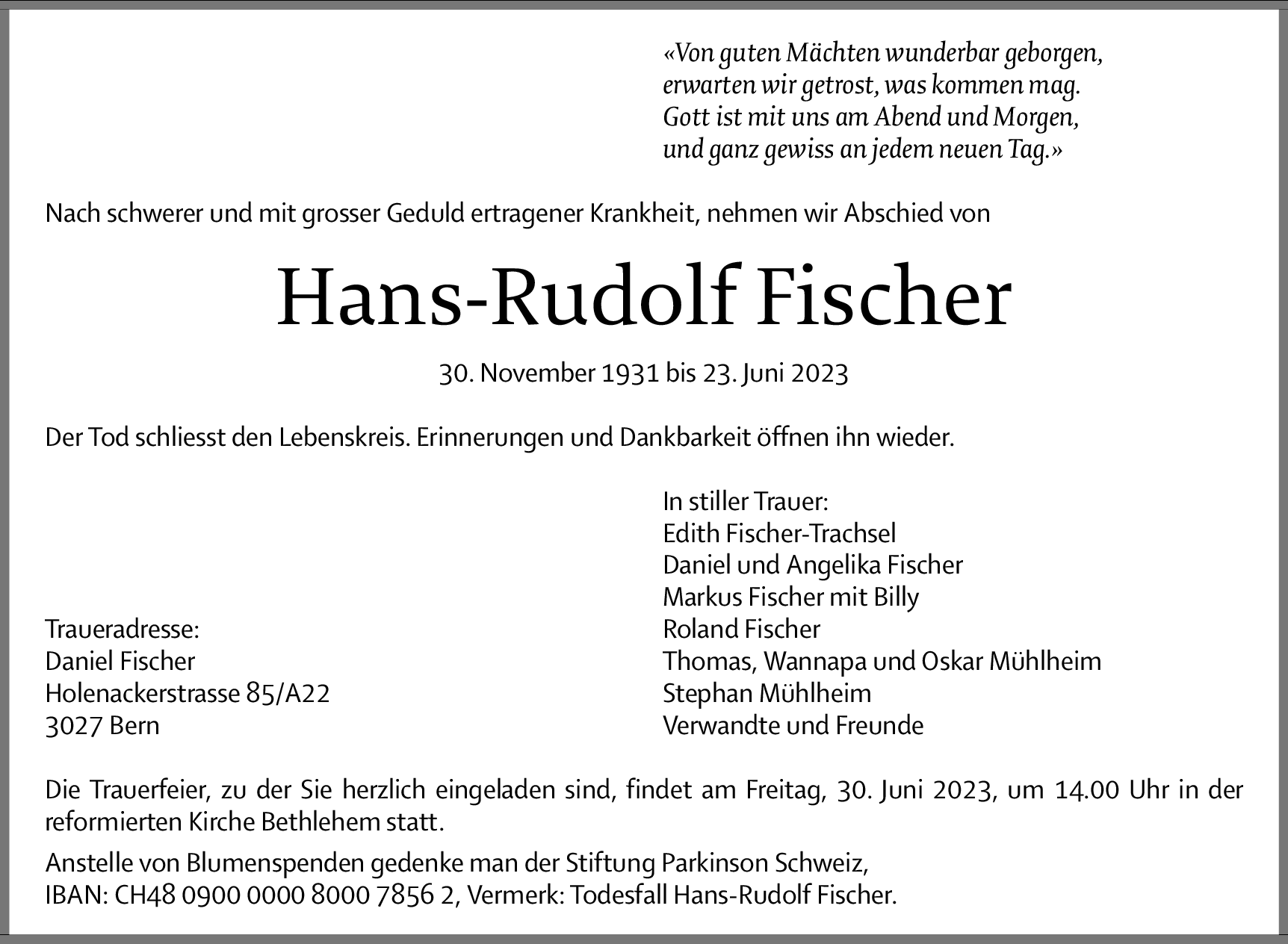 Möchten Sie über neue Todesanzeigen und Kondolenzen für diesen Verstorbenen informiert werden?