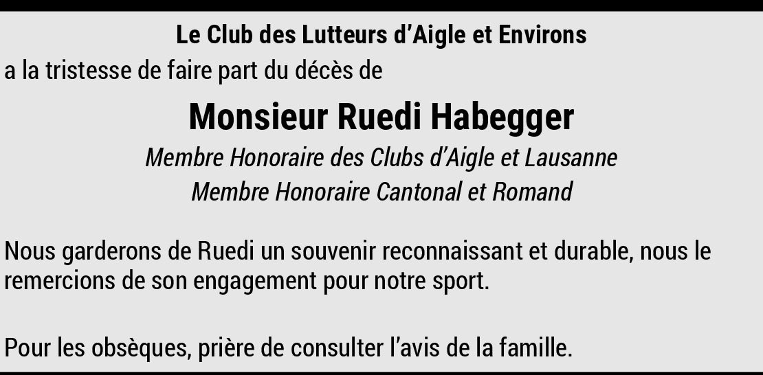 De tout cœur avec vous tous en ces jours douloureux de la séparation. Nous garderons le souvenir d’une Personne très gentille et dévouée, il a entraîné bien des jeunes à la lutte suisse à Penthéréaz.