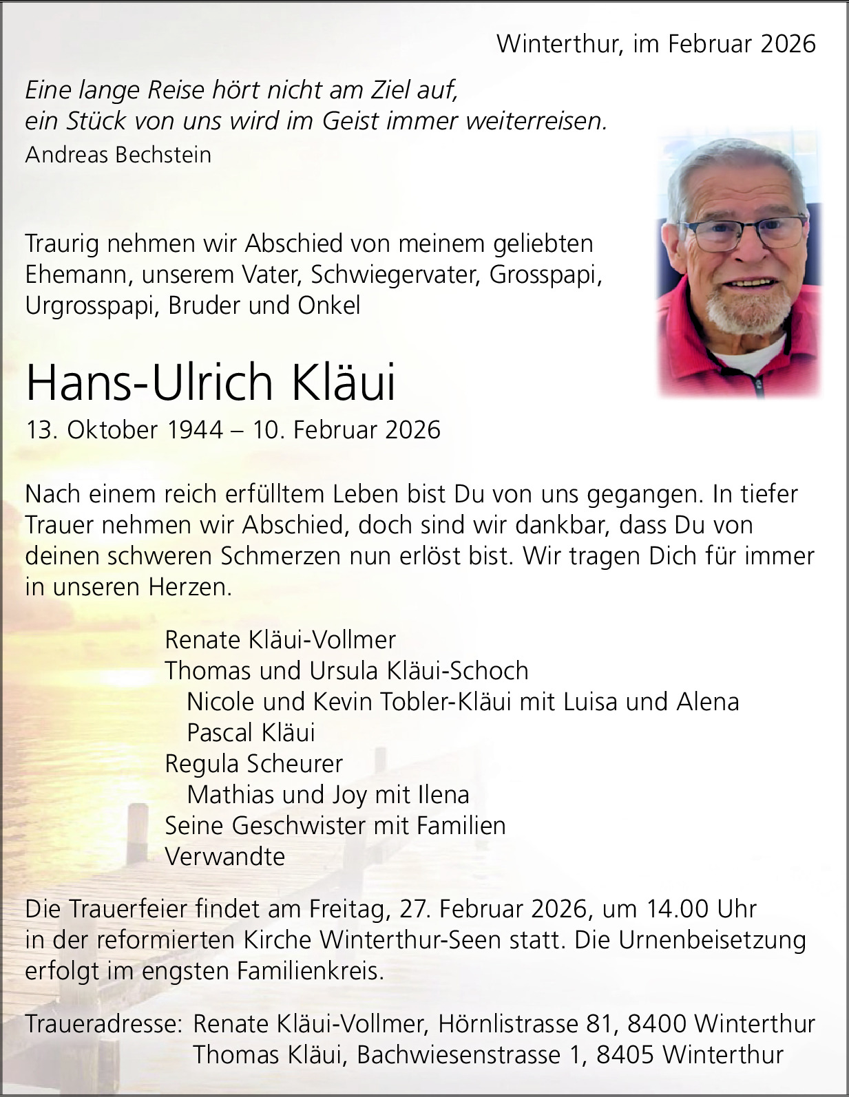 Möchten Sie über neue Todesanzeigen und Kondolenzen für diesen Verstorbenen informiert werden?