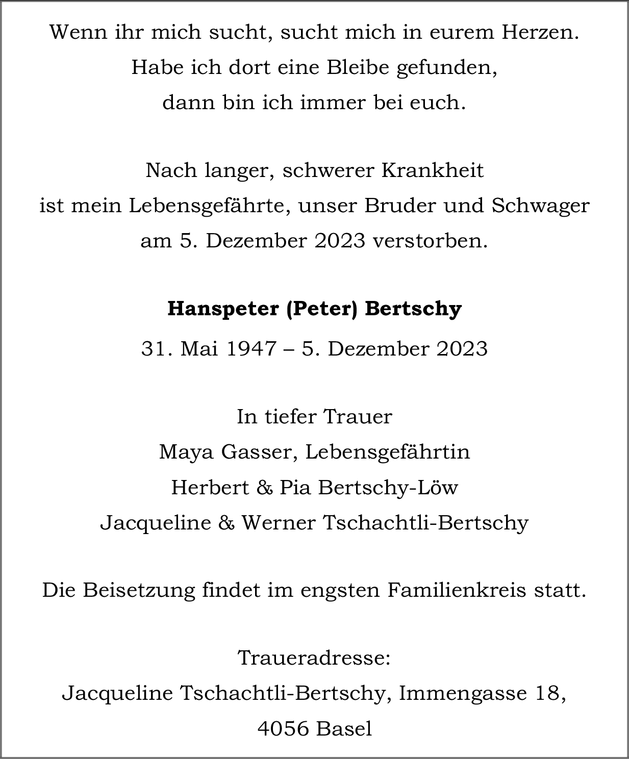 Möchten Sie über neue Todesanzeigen und Kondolenzen für diesen Verstorbenen informiert werden?