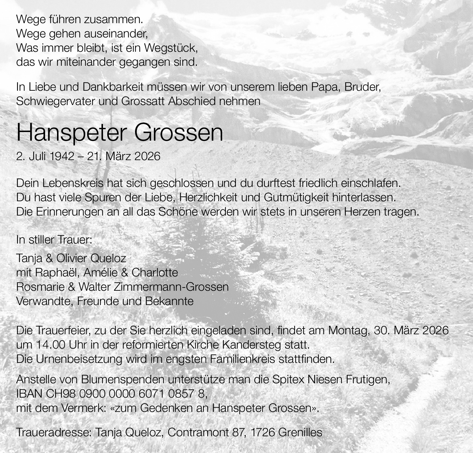 Möchten Sie über neue Todesanzeigen und Kondolenzen für diesen Verstorbenen informiert werden?
