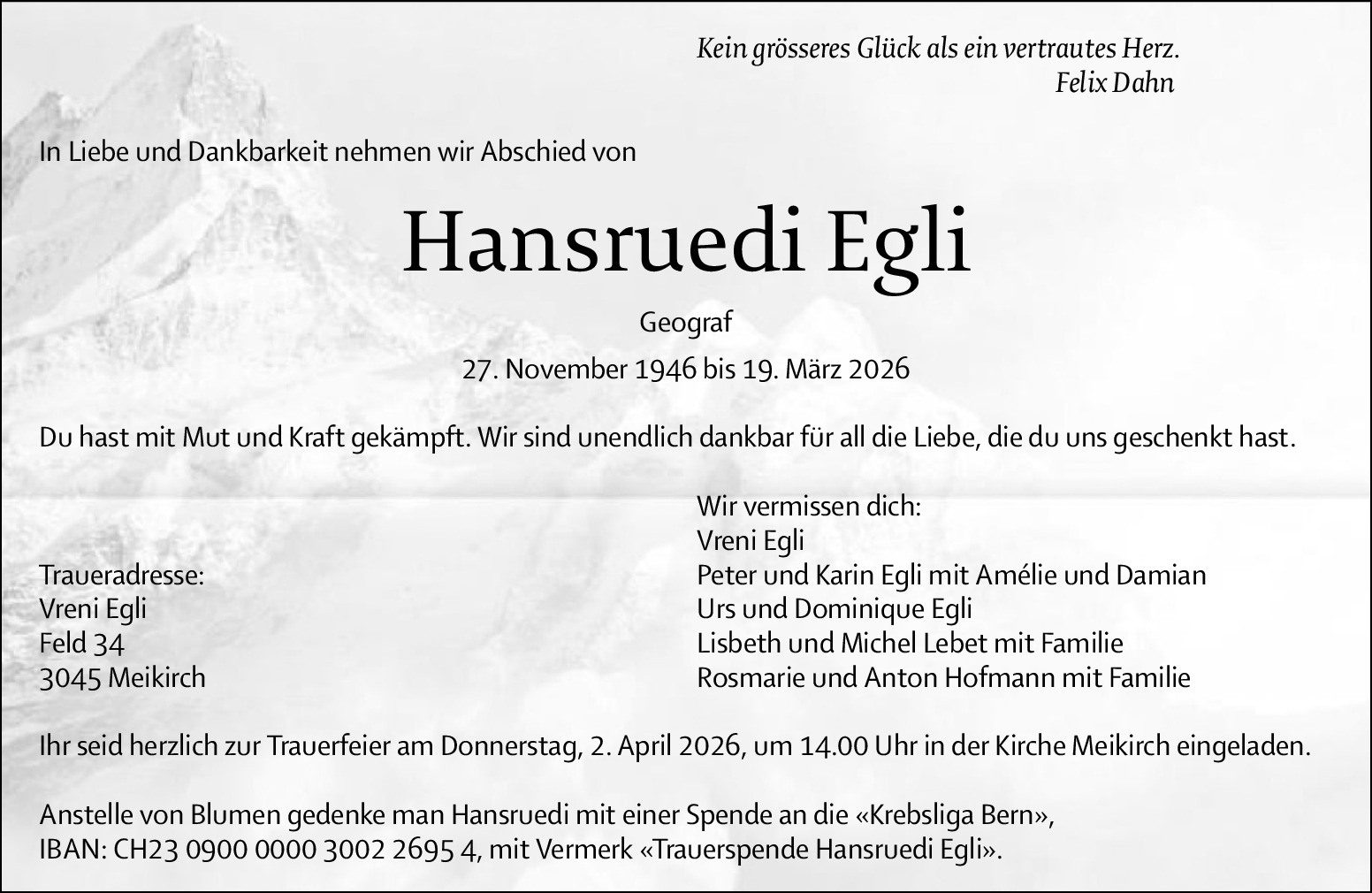 Möchten Sie über neue Todesanzeigen und Kondolenzen für diesen Verstorbenen informiert werden?