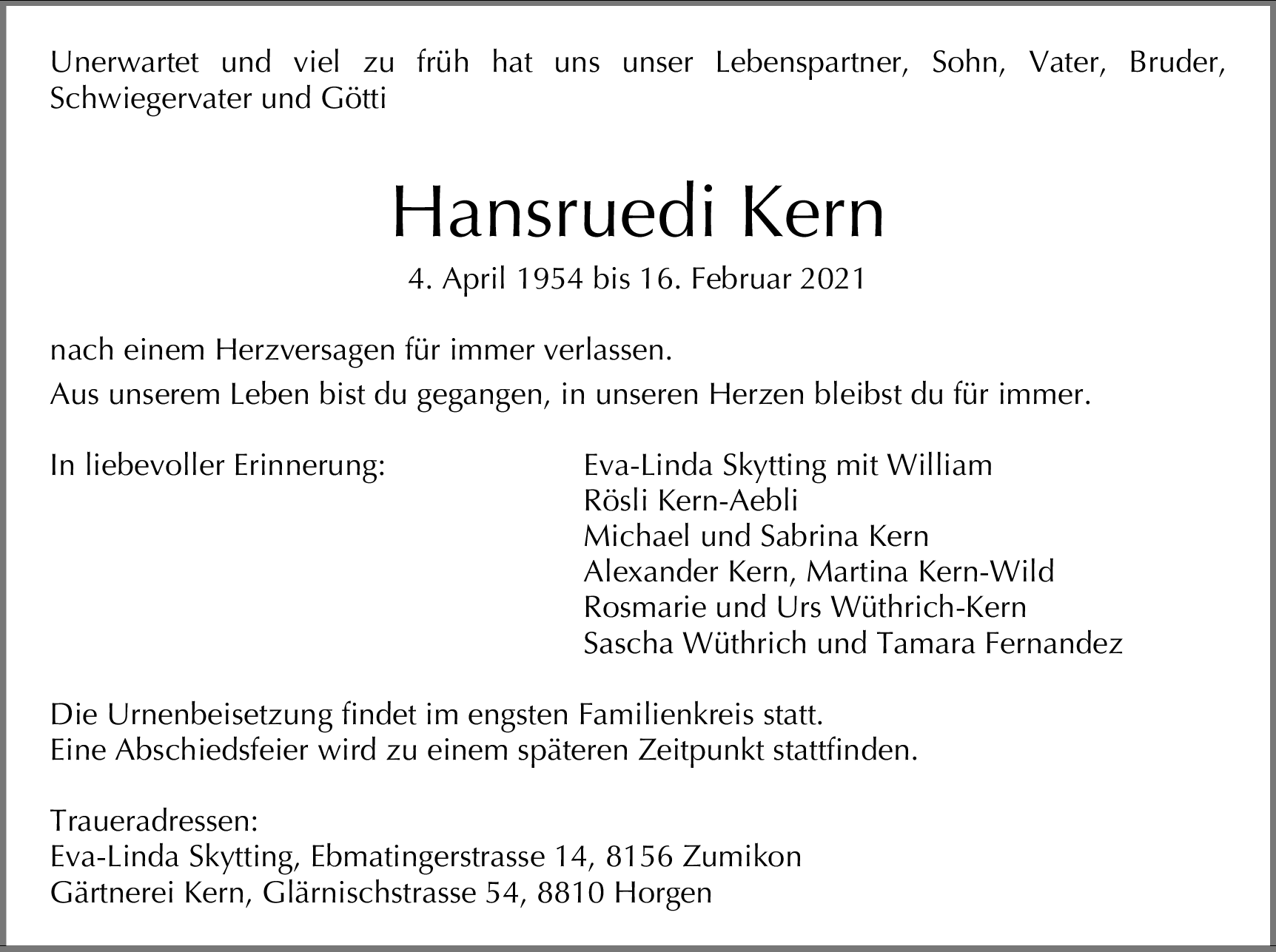 Möchten Sie über neue Todesanzeigen und Kondolenzen für diesen Verstorbenen informiert werden?