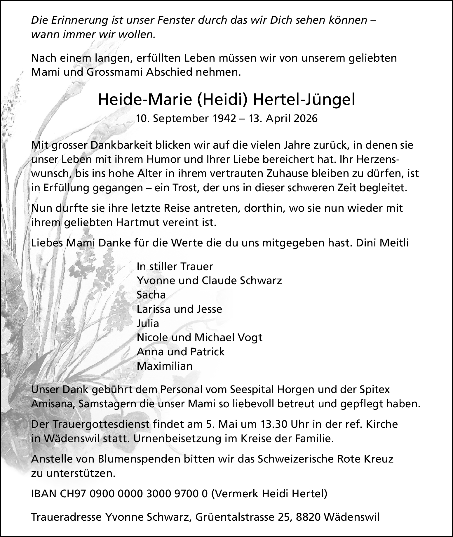 Möchten Sie über neue Todesanzeigen und Kondolenzen für diesen Verstorbenen informiert werden?