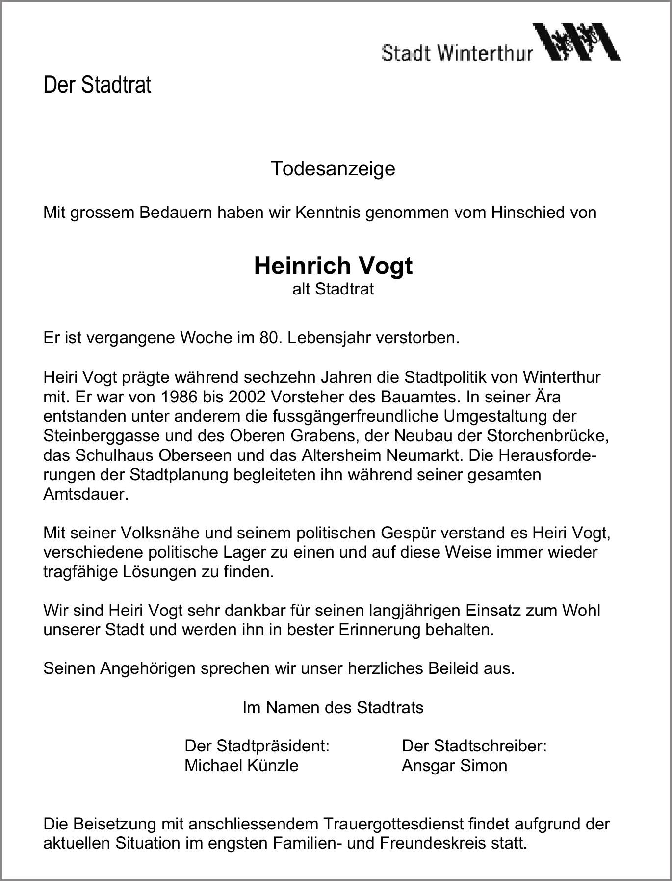 Letzte Kondolenzen