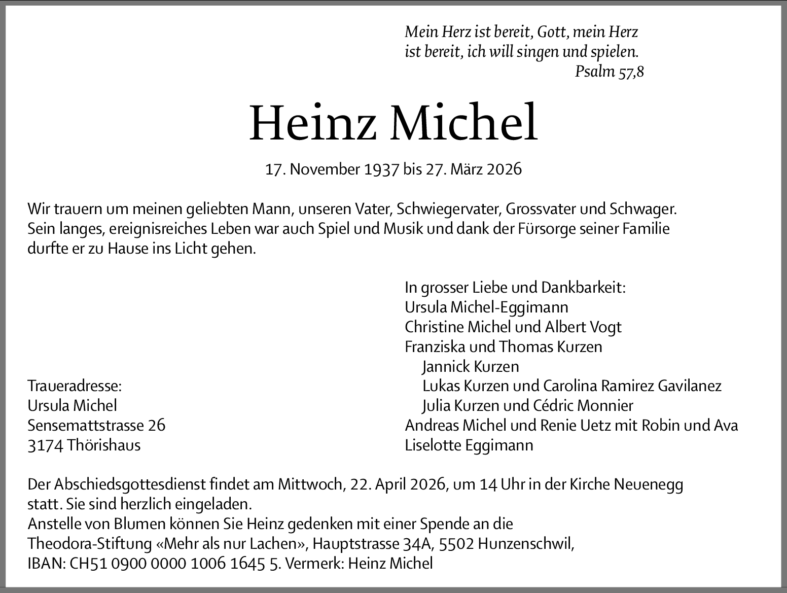 Möchten Sie über neue Todesanzeigen und Kondolenzen für diesen Verstorbenen informiert werden?