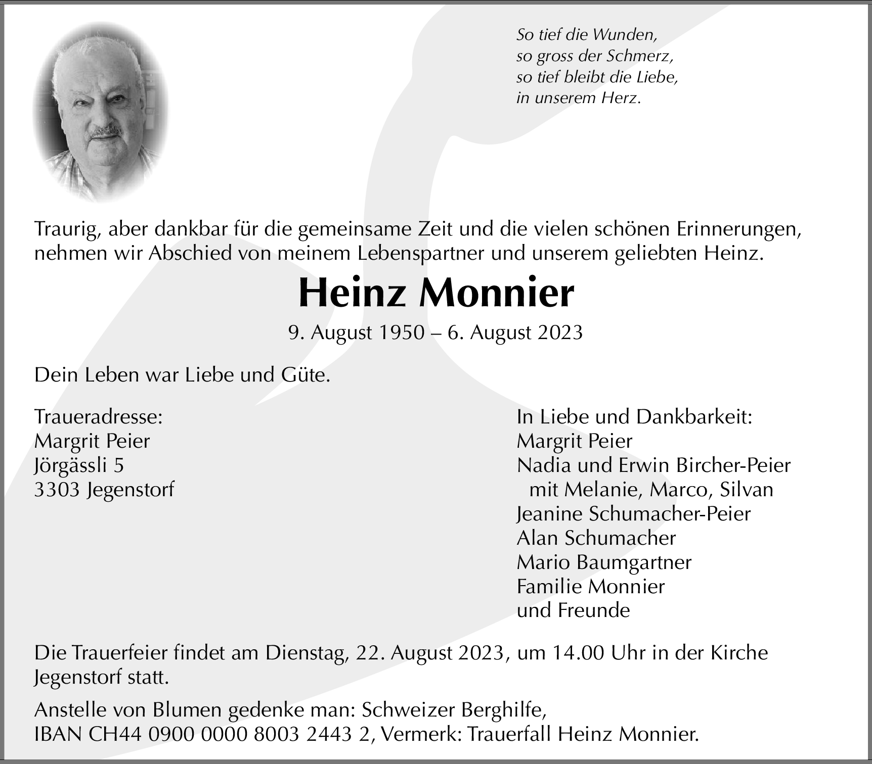 Möchten Sie über neue Todesanzeigen und Kondolenzen für diesen Verstorbenen informiert werden?