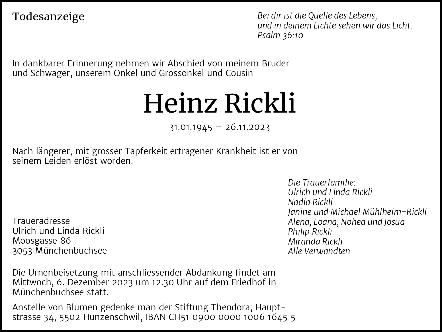 Möchten Sie über neue Todesanzeigen und Kondolenzen für diesen Verstorbenen informiert werden?