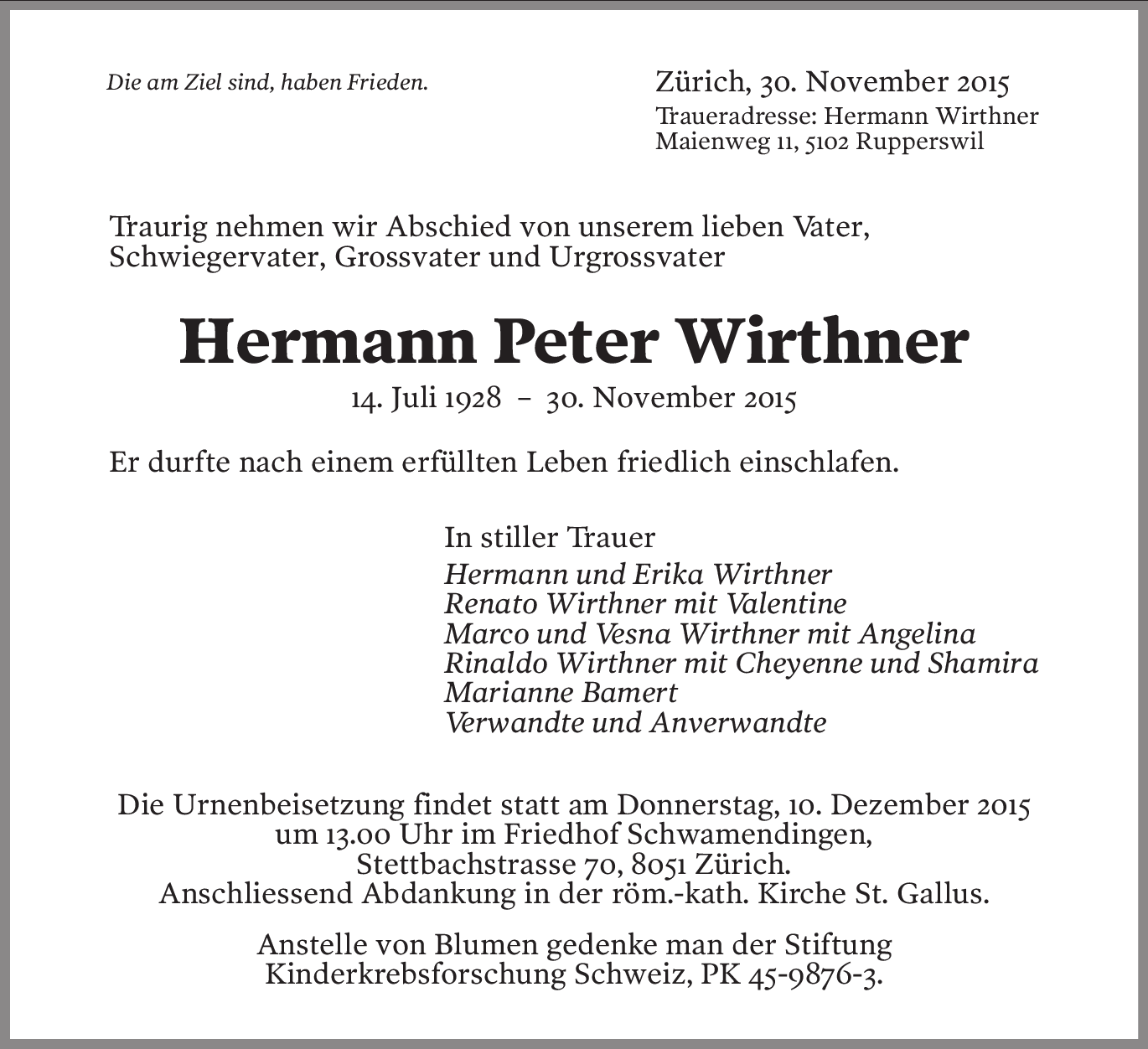 Möchten Sie über neue Todesanzeigen und Kondolenzen für diesen Verstorbenen informiert werden?