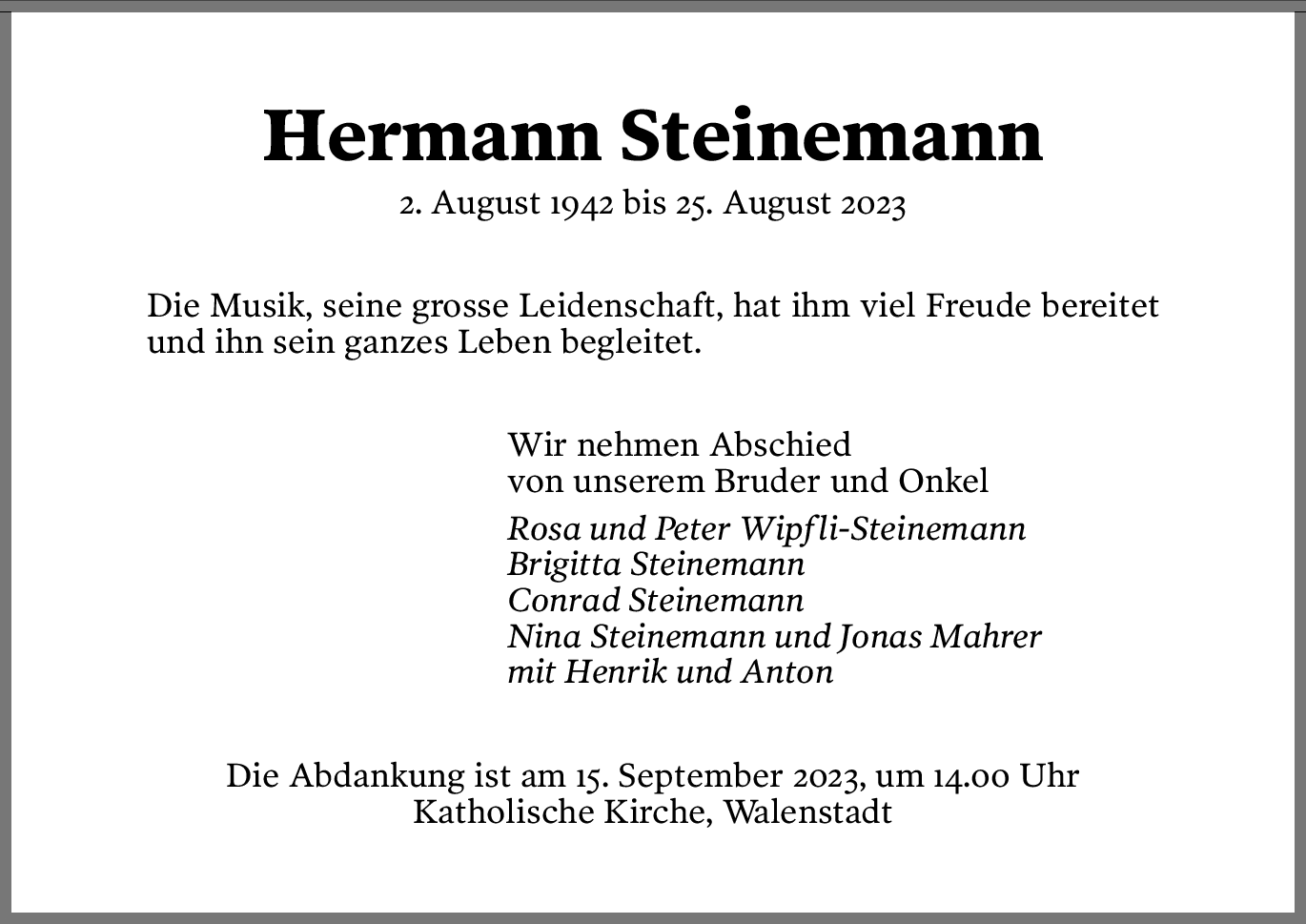 Möchten Sie über neue Todesanzeigen und Kondolenzen für diesen Verstorbenen informiert werden?