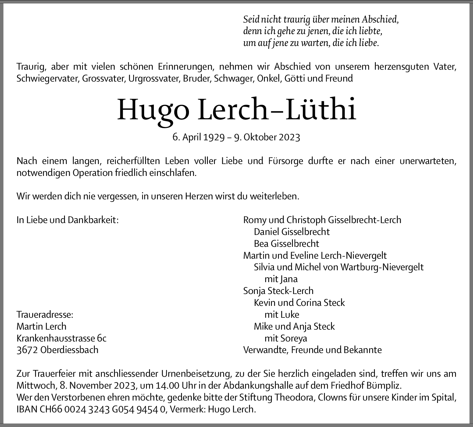 Möchten Sie über neue Todesanzeigen und Kondolenzen für diesen Verstorbenen informiert werden?
