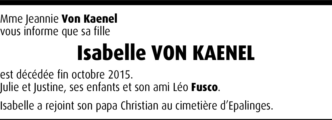Vor mehr als 4 Jahren Melden Mes plus sincères condoléances. Une amie d'école primaire d'Isabelle à Epalinges Von Patricia Rottura
