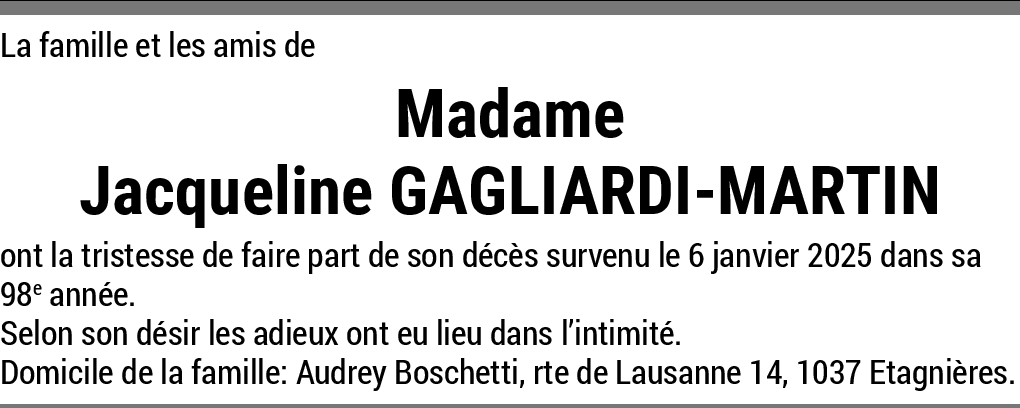 15.01.2026 Melden Toutes nos condoléances à la famille. Repose en paix Jacqueline 🙏🏻🙏🏻🙏🏻🫶🏼 Von Nani et famille