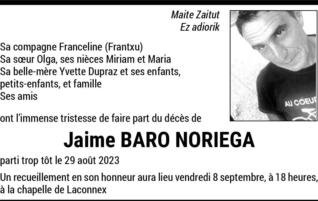 Tu étais un ange (basque) sur cette terre, et j'en remercie la vie d'avoir pu faire en sorte que nos vies se croisent. Que de moments drôles et fun j'ai vécu avec toi. Ton accueil, ta gentillesse, ton humour était sans pareil. Mes plus tendres et sincères condoléances à Franceline et toute ta famille. On ne manquera pas de te faire santé à chaque fois. Bon repos