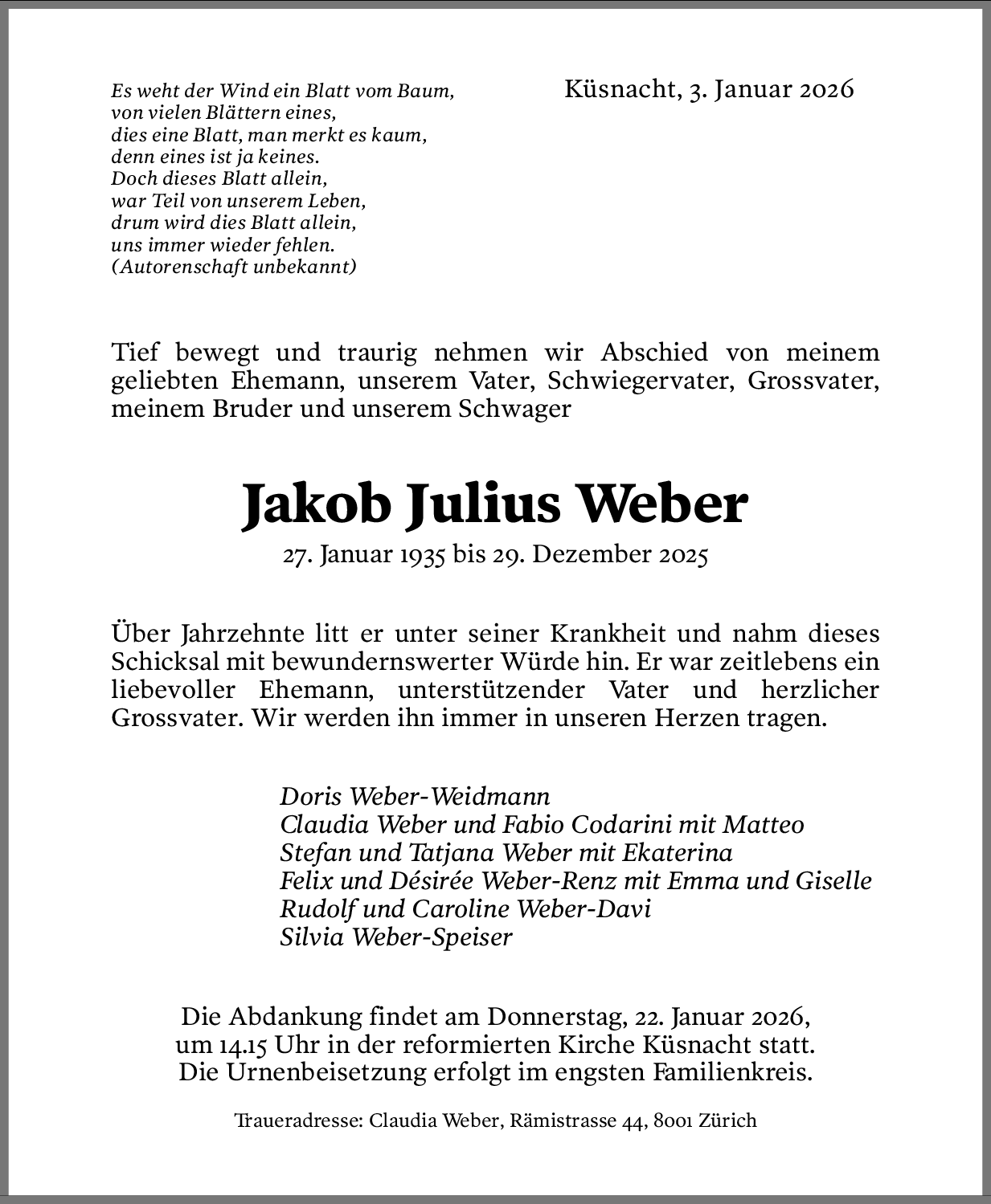 Möchten Sie über neue Todesanzeigen und Kondolenzen für diesen Verstorbenen informiert werden?