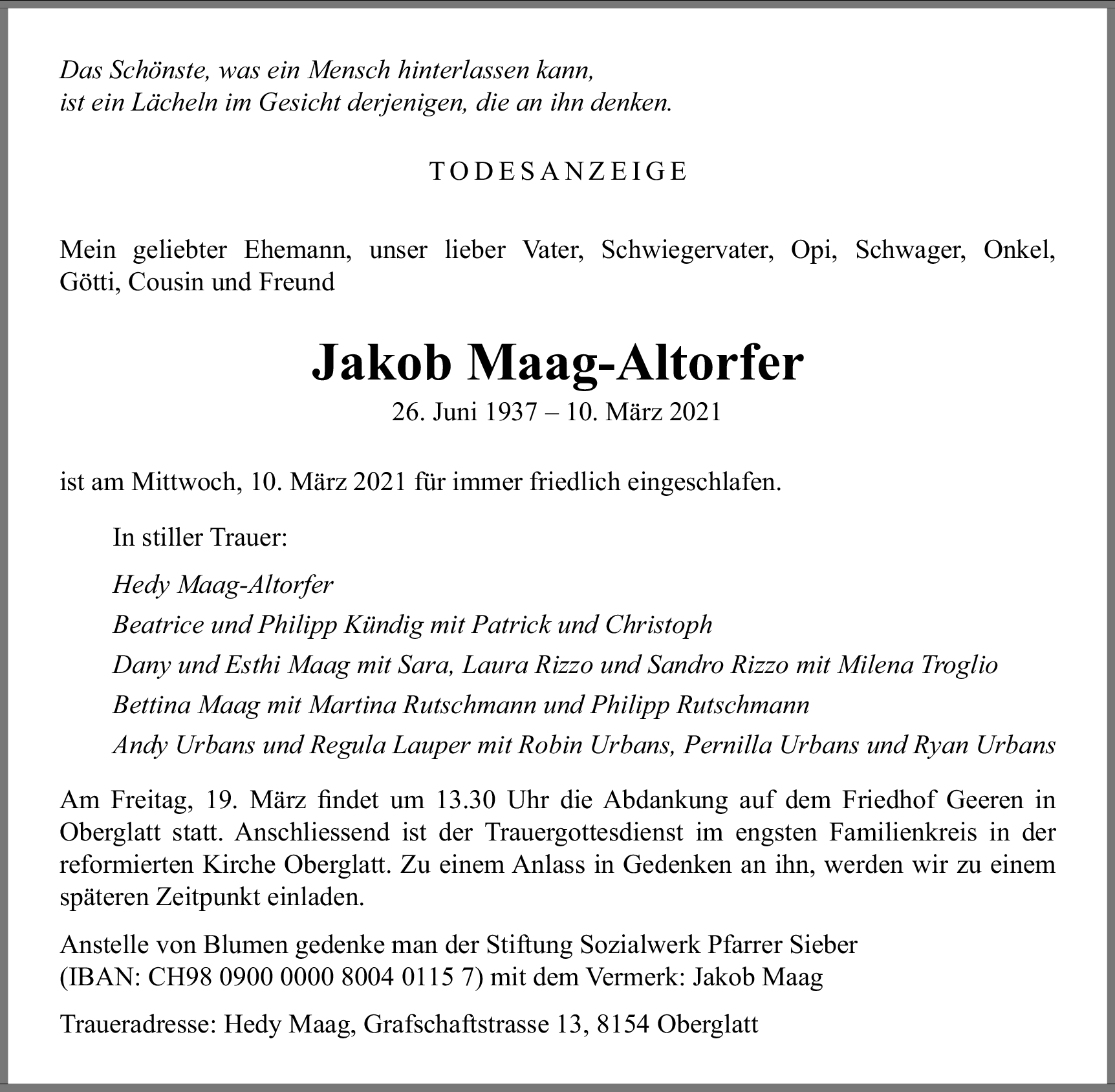 Möchten Sie über neue Todesanzeigen und Kondolenzen für diesen Verstorbenen informiert werden?