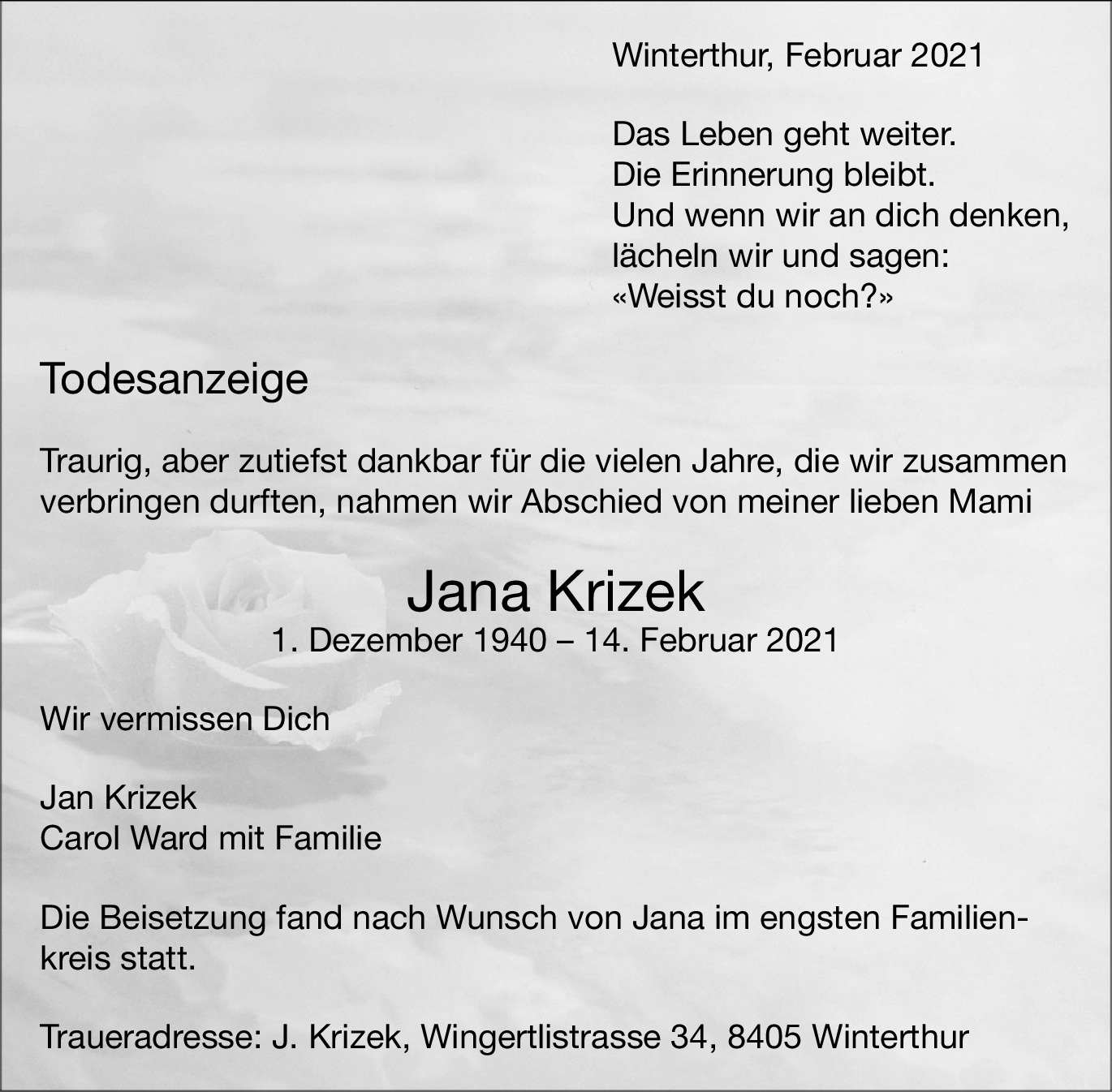 Möchten Sie über neue Todesanzeigen und Kondolenzen für diesen Verstorbenen informiert werden?