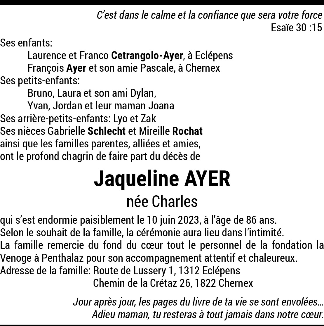 14.06.2023 Melden Chère Famille, Nous sommes de tout coeur en pensée avec vous pendant ces jours de chagrin et de séparation. Veuillez croire à notre profonde et sincère sympathie. Anne-Lise et Edmond Pilloud Von Pilloud