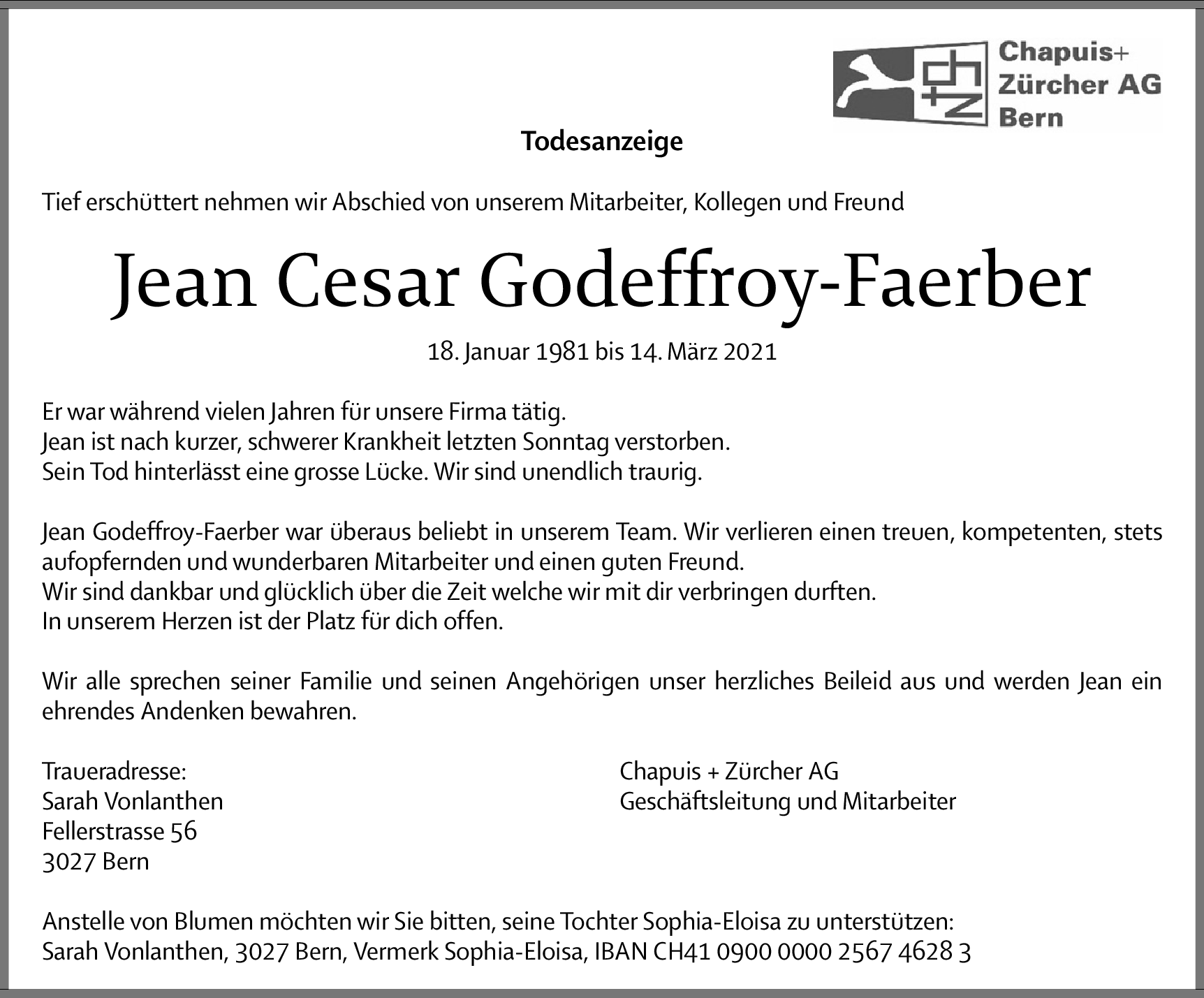 Möchten Sie über neue Todesanzeigen und Kondolenzen für diesen Verstorbenen informiert werden?