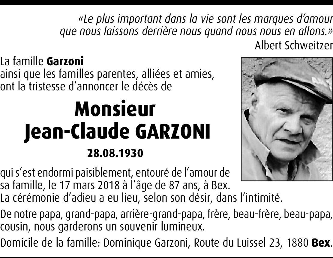 Vor mehr als 4 Jahren Melden Veuillez accepter toute notre sympathie en ces jours de deuil. Salutations et amicales pensées Von J-Bernard et Annette Moret