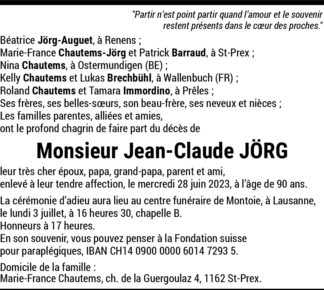 03.07.2023 Melden Toute ma sympathie en ces jours de séparation Daniel Berger ancien facteur du Bourg de Saint-Prex Von Berger