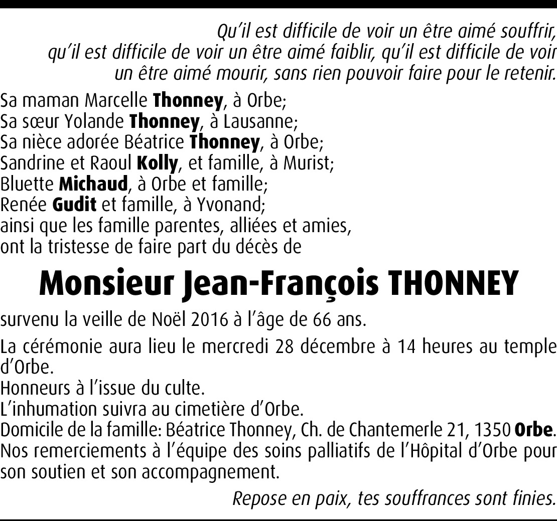 Vor mehr als 4 Jahren Melden Nous vous prions d'accepter notre respectueuse sympathie. Nous savons combien ce malheur vous atteint et tenons à ce que vous sachiez toute la part que nous prenons à votre douleur. Von Cosette et Michel RIEDO