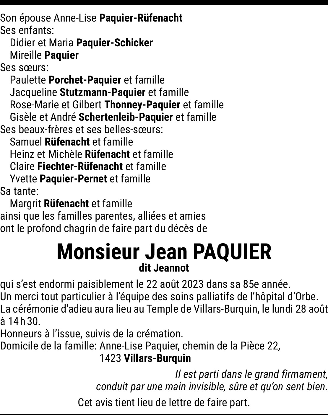 25.08.2023 Melden Chère Anne-Lise et Famille, Bien en pensées avec vous tous durant cette douloureuse épreuve qu'est la séparation. Avec toute ma sympathie. Meilleures messages. Anne-Françoise Von Stucki