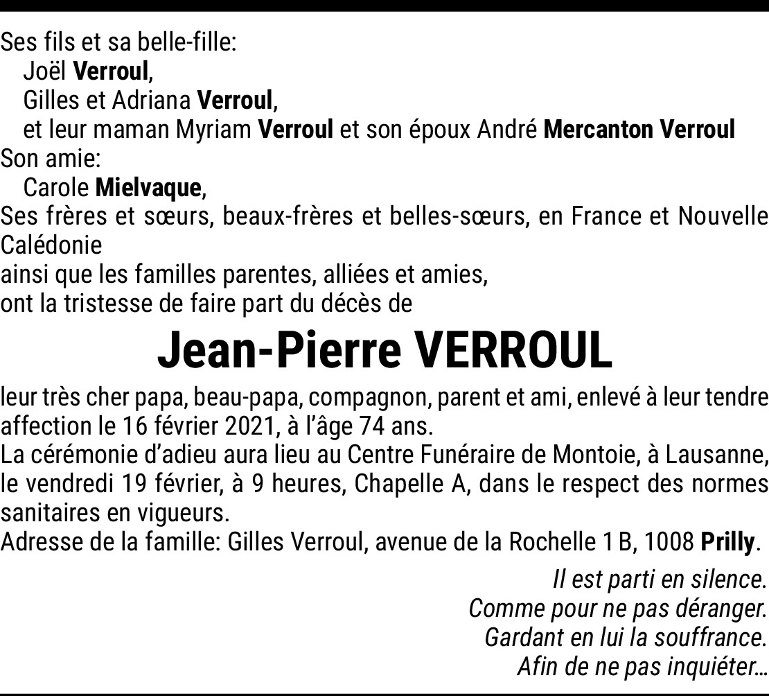 Nous sommes profondément attristés par la perte de tonton Jean-Pierre. Un être cher à notre cœur vient de s’en aller. Comment exprimer par de simples mots la grande émotion et l’infinie tristesse qu’au fond de notre cœur nous ressentons. Nous vous présentons tous les trois nos condoléances les plus sincères.