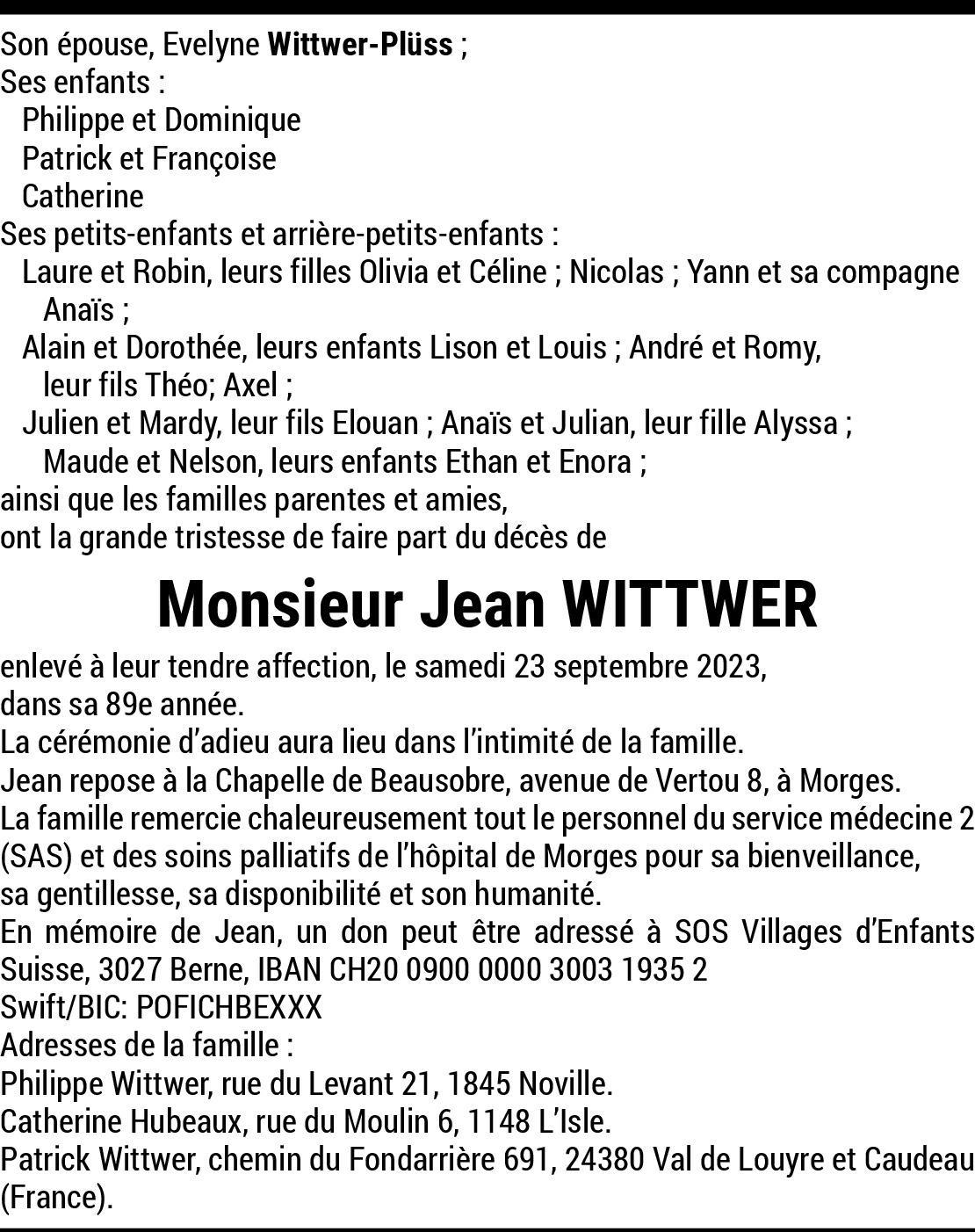 C'est avec beaucoup de peine que nous avons appris le décès de M. Wittwer.