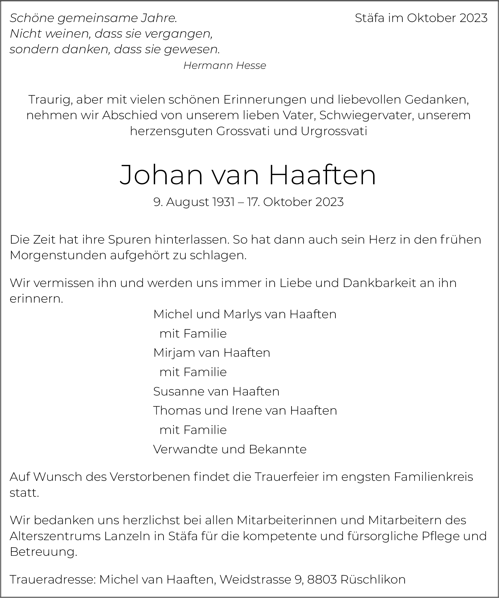 Möchten Sie über neue Todesanzeigen und Kondolenzen für diesen Verstorbenen informiert werden?