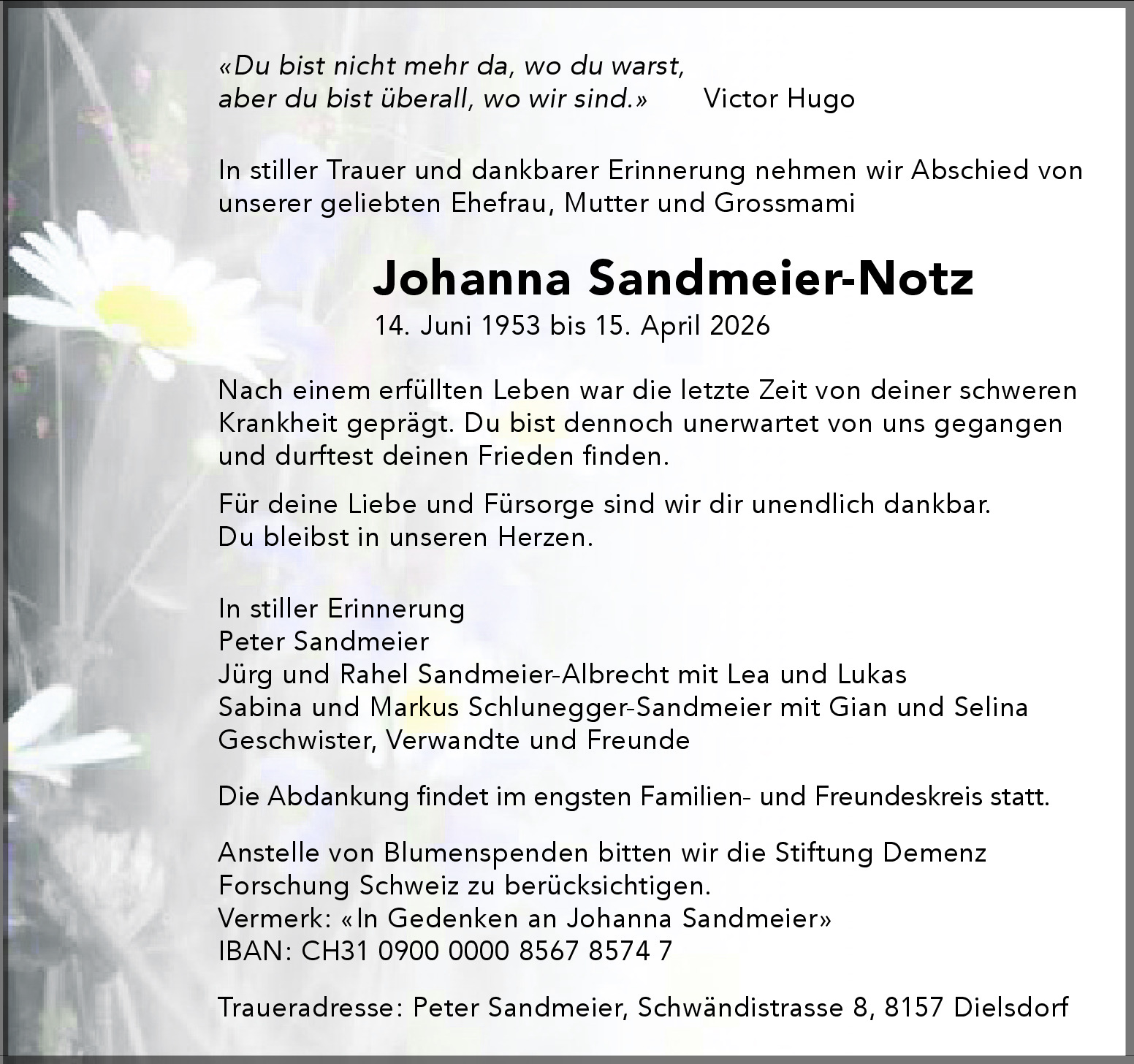 Möchten Sie über neue Todesanzeigen und Kondolenzen für diesen Verstorbenen informiert werden?