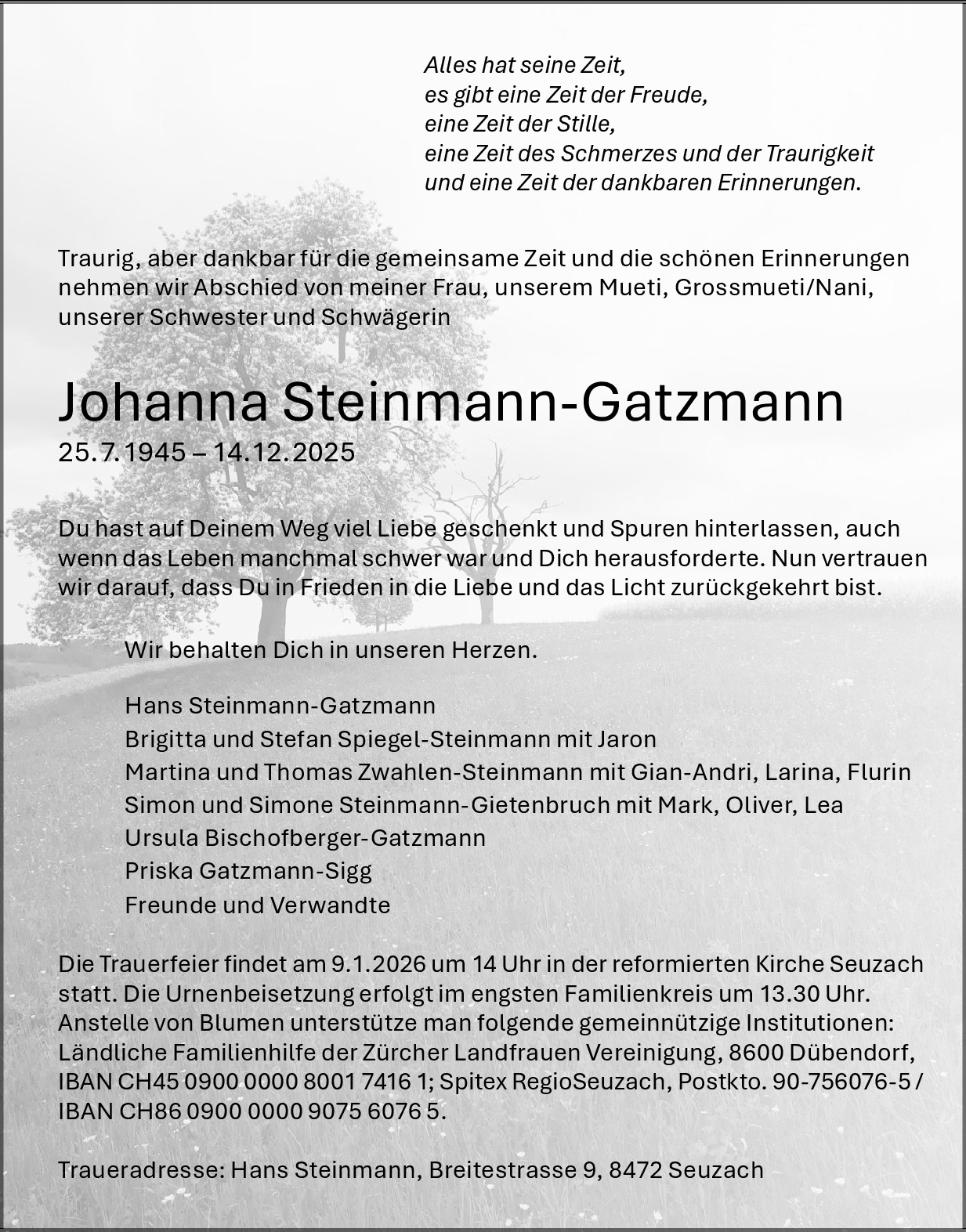 Möchten Sie über neue Todesanzeigen und Kondolenzen für diesen Verstorbenen informiert werden?