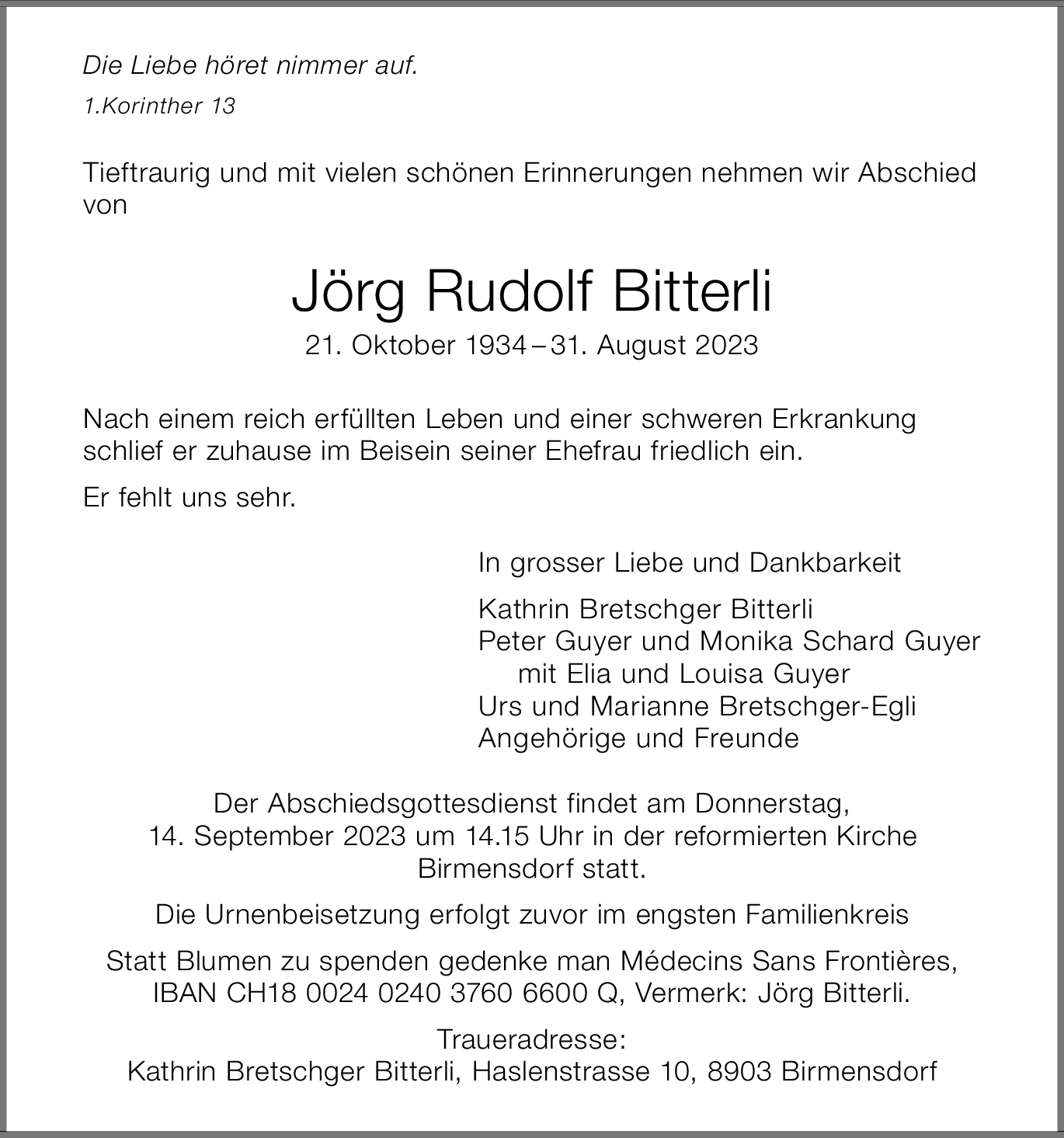 Möchten Sie über neue Todesanzeigen und Kondolenzen für diesen Verstorbenen informiert werden?