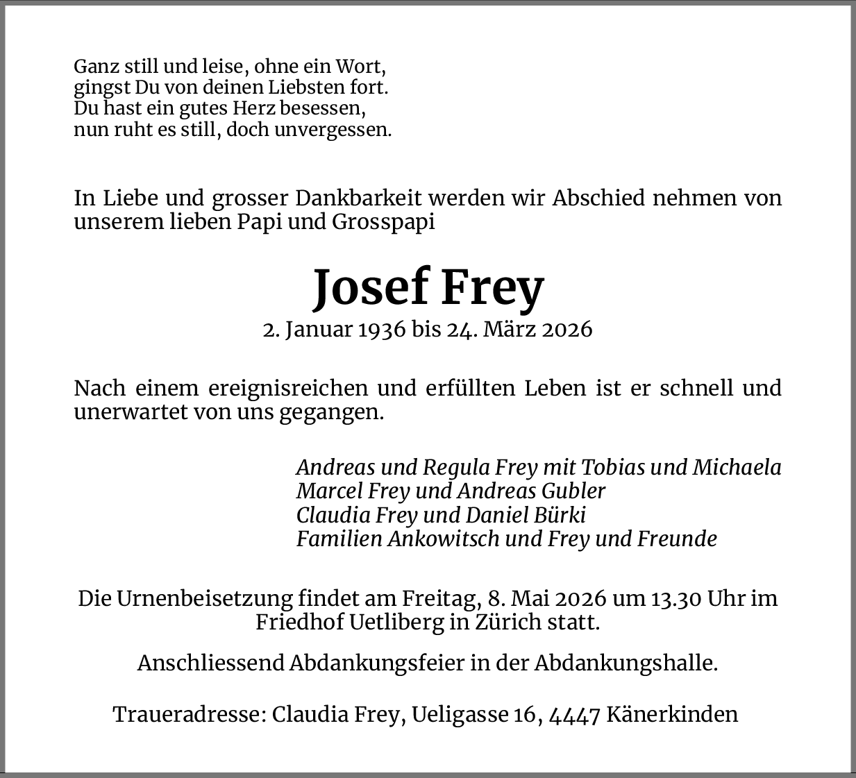 Möchten Sie über neue Todesanzeigen und Kondolenzen für diesen Verstorbenen informiert werden?