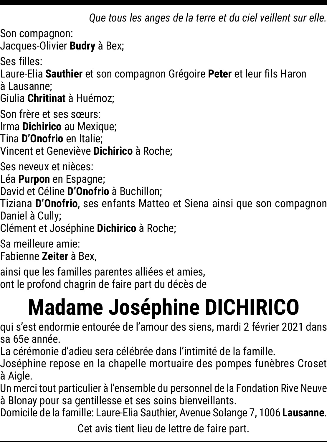 Joséphine, je viens d'apprendre ton décès et la douleur m'envahit.