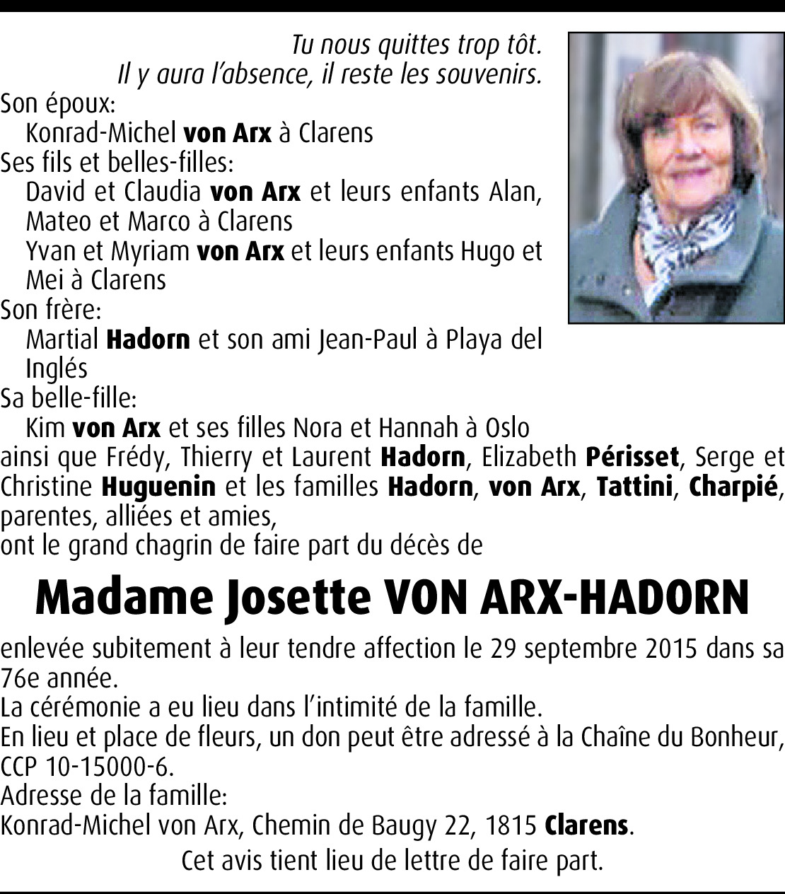 Josette Von Arx-Hadorn
