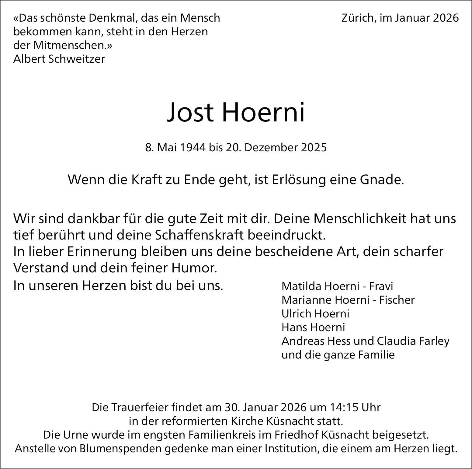 Möchten Sie über neue Todesanzeigen und Kondolenzen für diesen Verstorbenen informiert werden?