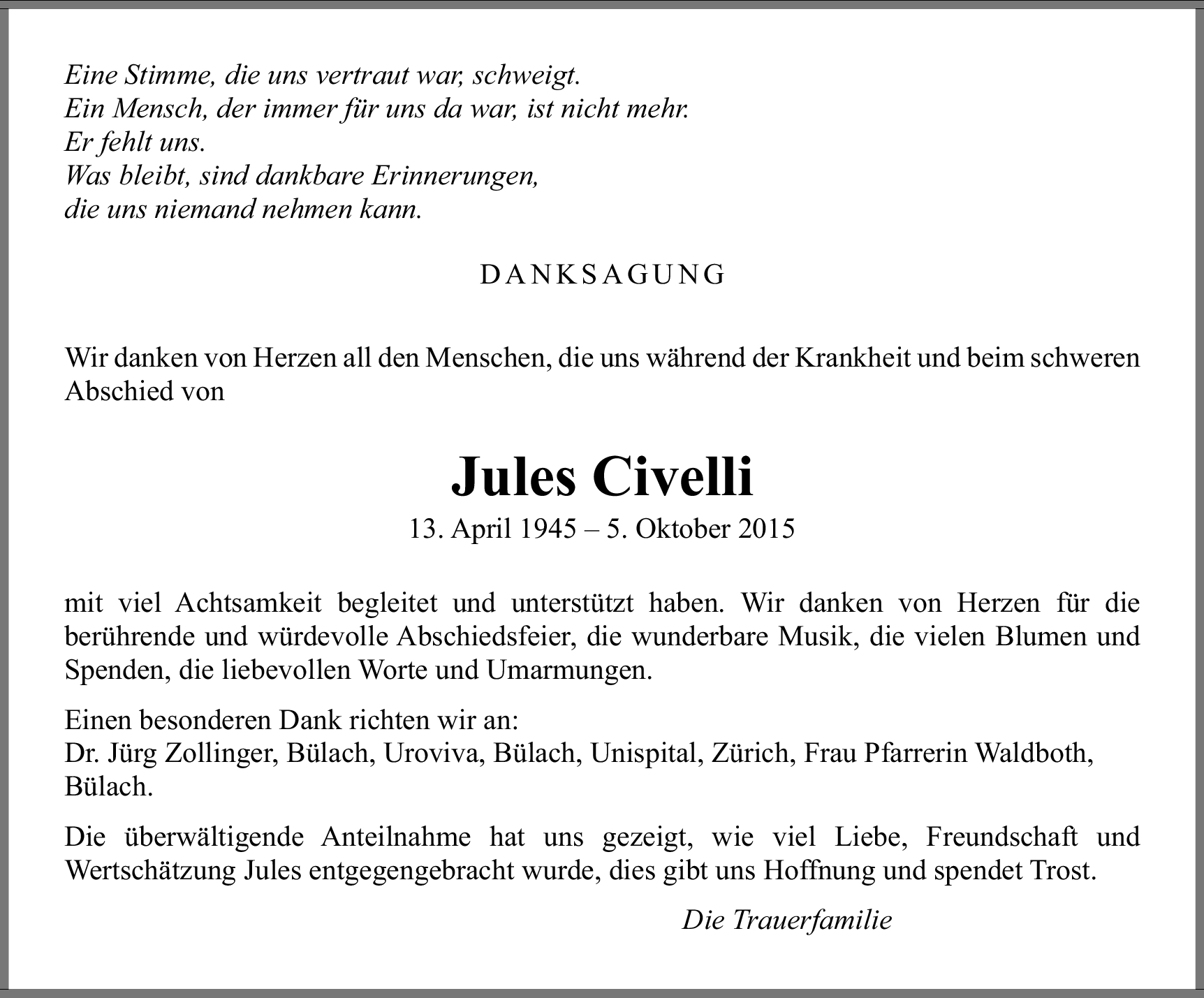 Letzte Kondolenzen