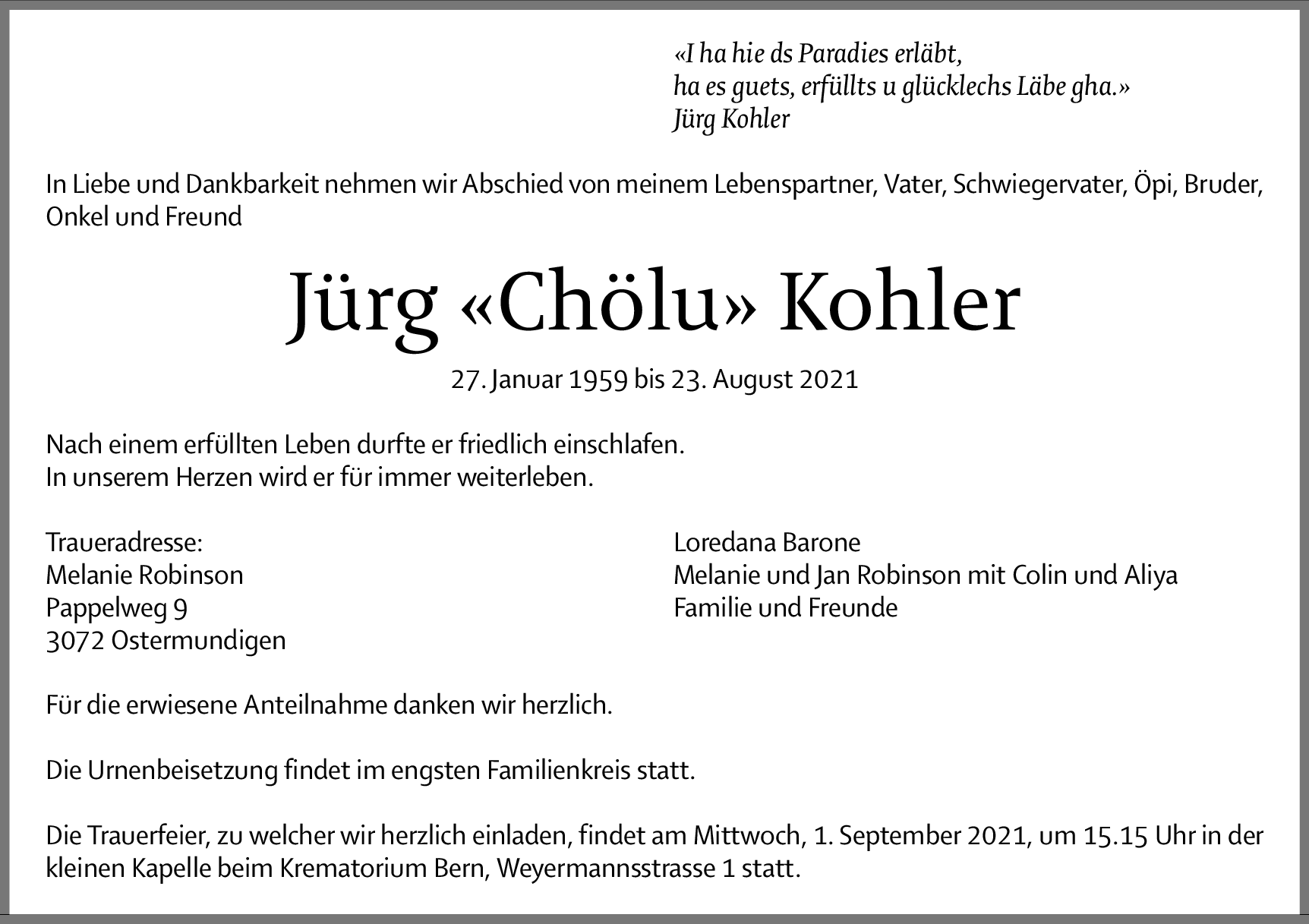 Möchten Sie über neue Todesanzeigen und Kondolenzen für diesen Verstorbenen informiert werden?